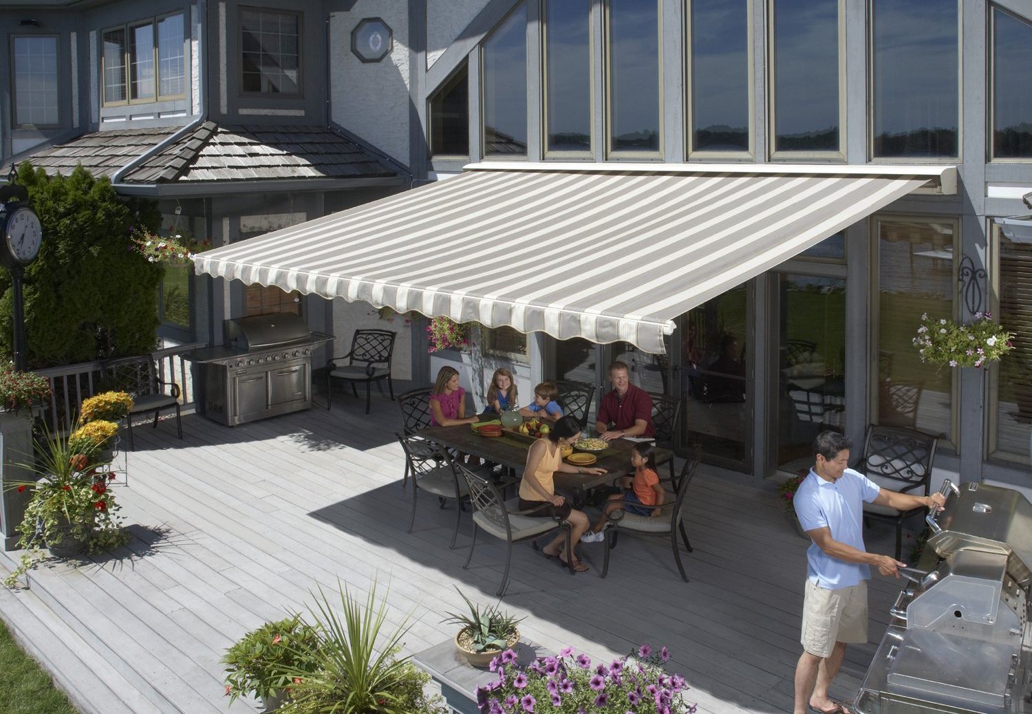 Retractable Awnings provide instant comfort from the sun.